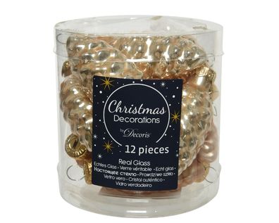 • Christbaumschmuck Zapfen Glas 4,5cm 12 Stück - Champagne