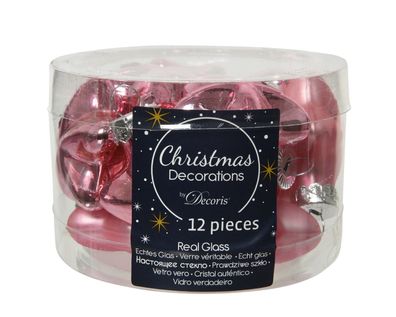 • Christbaumschmuck Sterne 4cm Glas 12 Stück - Lippenstiftrosa