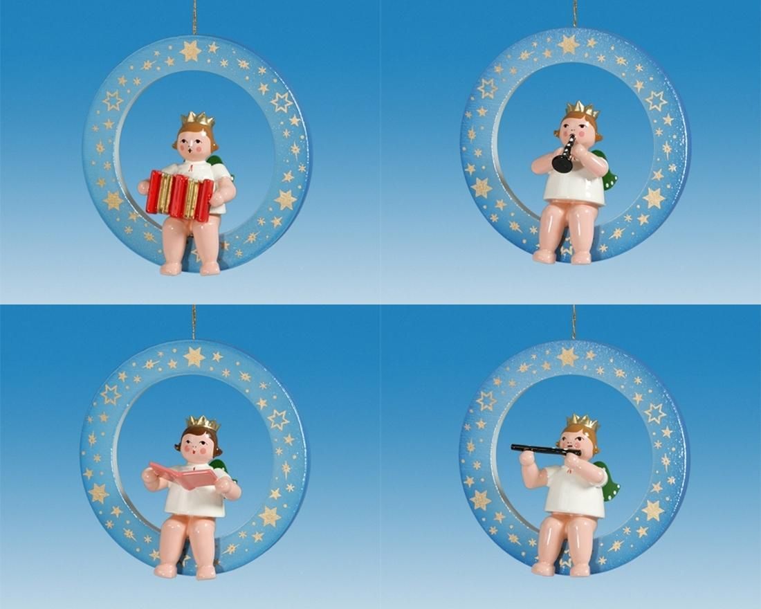 Christbaumschmuck Blauer Ring mit Engel und Krone 4 teilig Höhe 6cm NEU Baumbehan