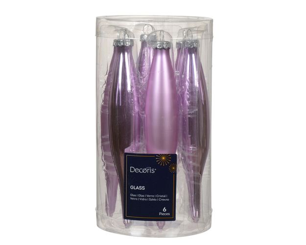 Christbaumschmuck Eiszapfen 15cm Glas 6er Set - Helllila