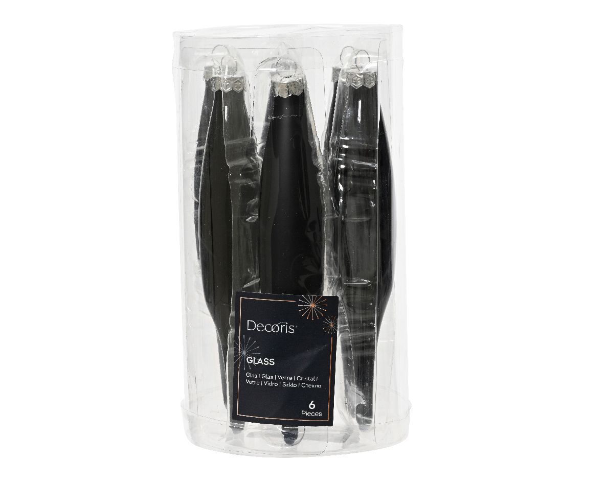 Christbaumschmuck Eiszapfen 15cm Glas 6er Set - Schwarz