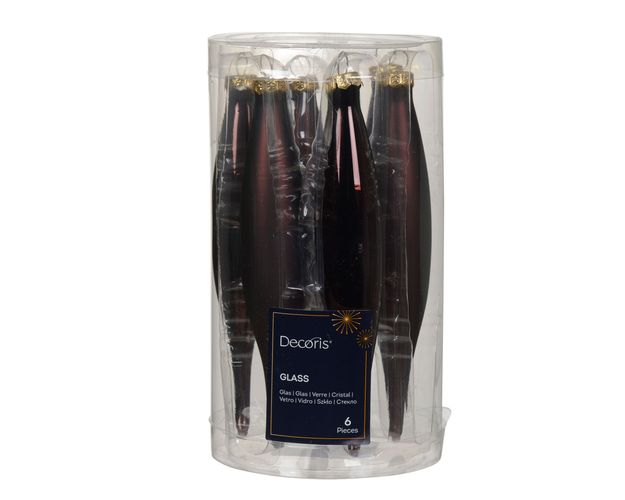 Christbaumschmuck Eiszapfen 15cm Glas 6er Set - Schwarze Trüffel