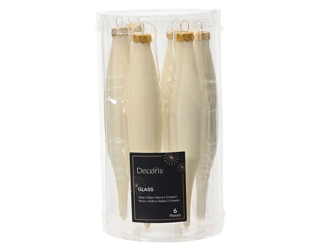 Christbaumschmuck Eiszapfen 15cm Glas 6er Set - Wollweiss