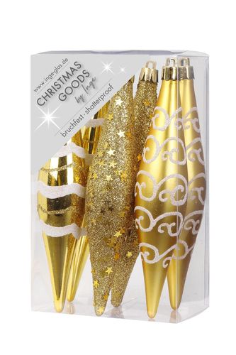 Christbaumschmuck Eiszapfen 15cm Kunststoff 6er Set - Gold