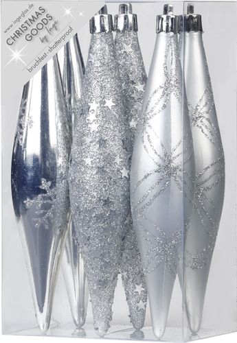 Christbaumschmuck Eiszapfen 15cm Kunststoff 6er Set - Silber