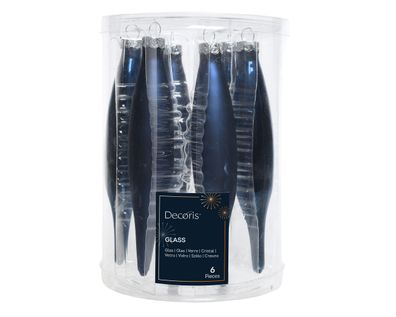 • Christbaumschmuck Eiszapfen 15cm Glas 6er Set - Nachtblau