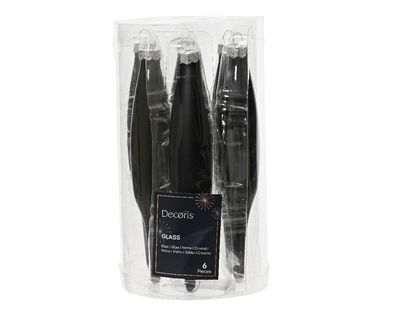• Christbaumschmuck Eiszapfen 15cm Glas 6er Set - Schwarz