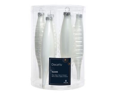 • Christbaumschmuck Eiszapfen 15cm Glas 6er Set - Winterweiß
