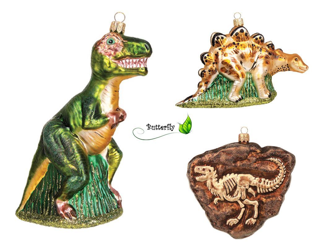 Christbaumschmuck Glas 10cm Dinosaurier Figur Beige