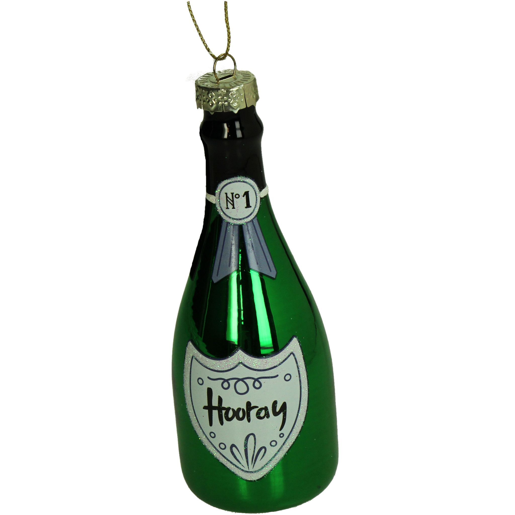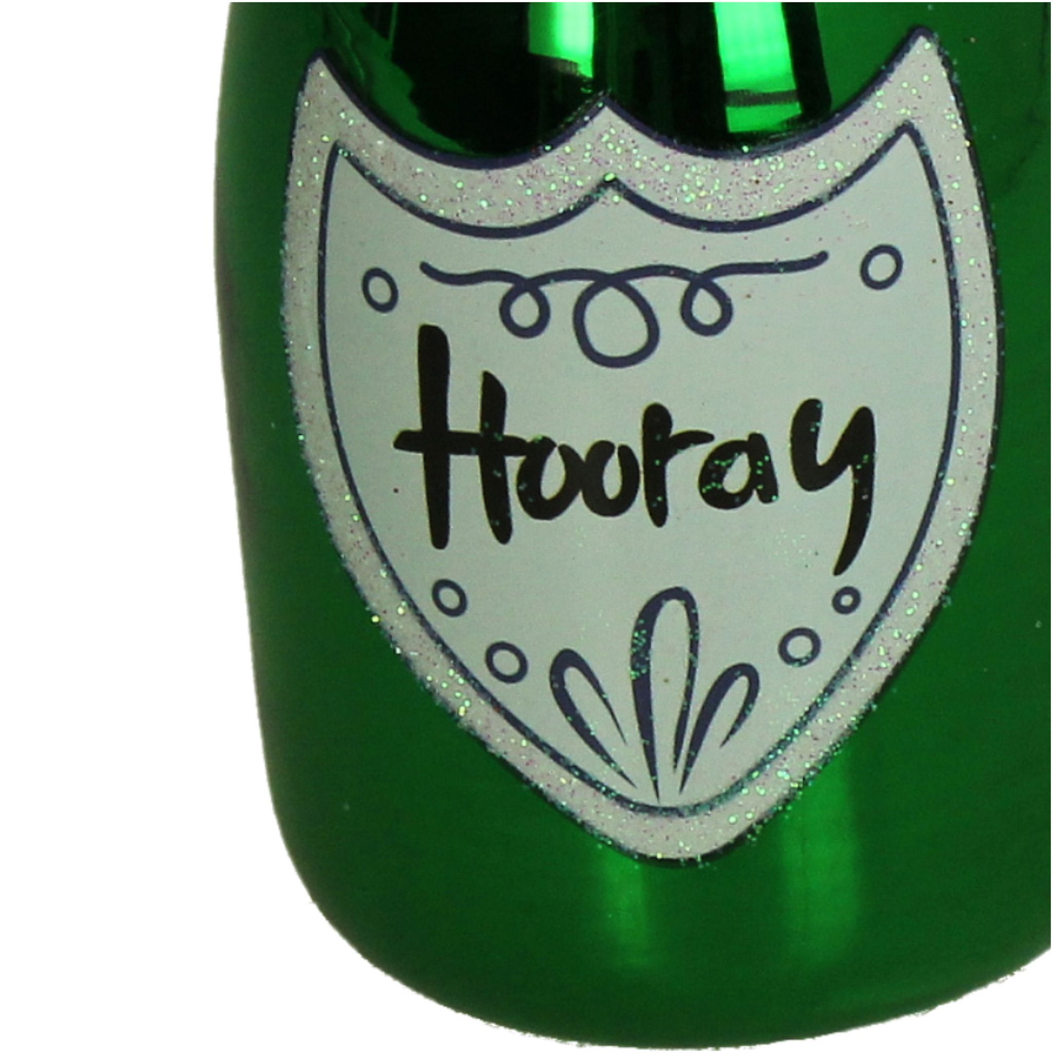 Christbaumschmuck Glas 14cm Sektflasche Hooray Figur Grün