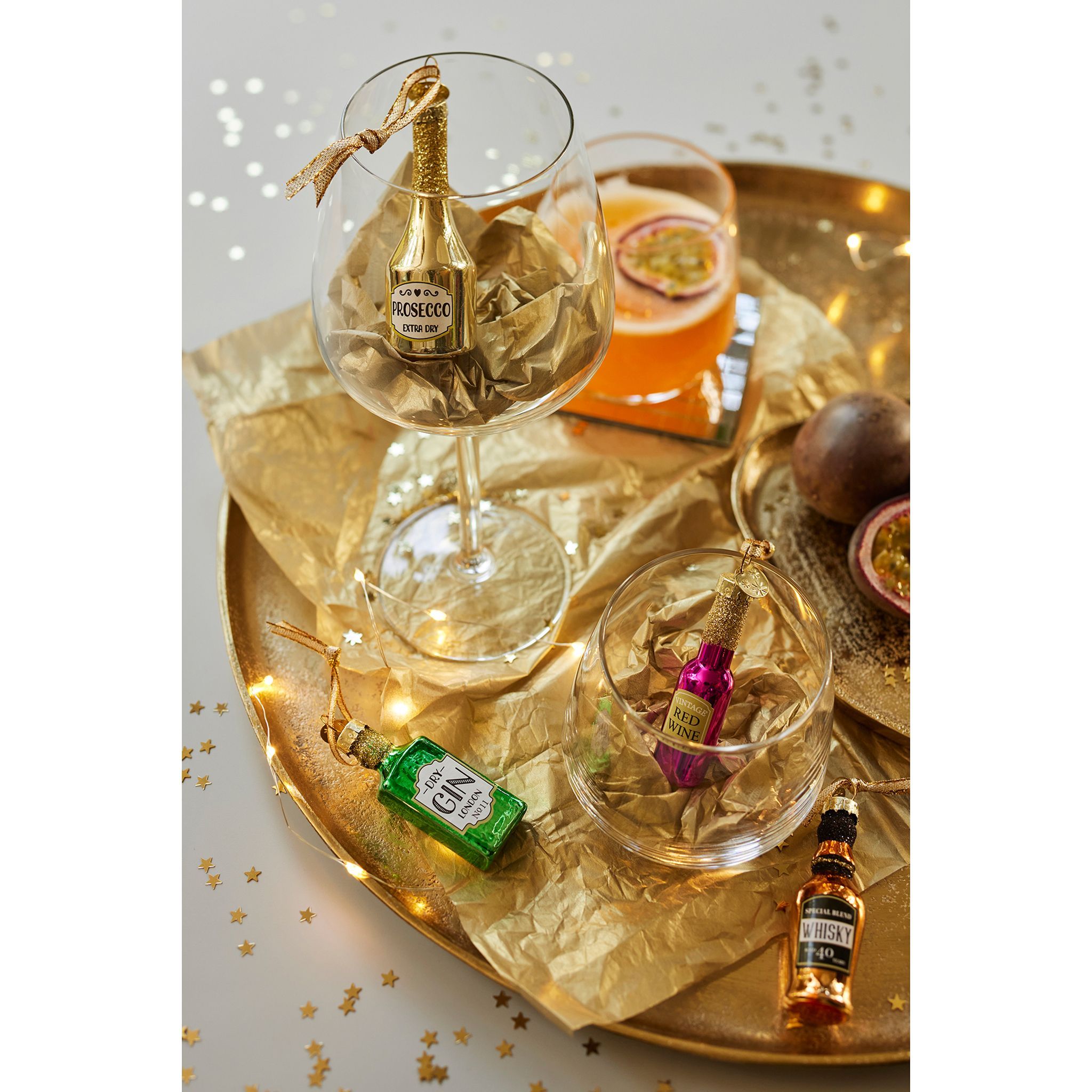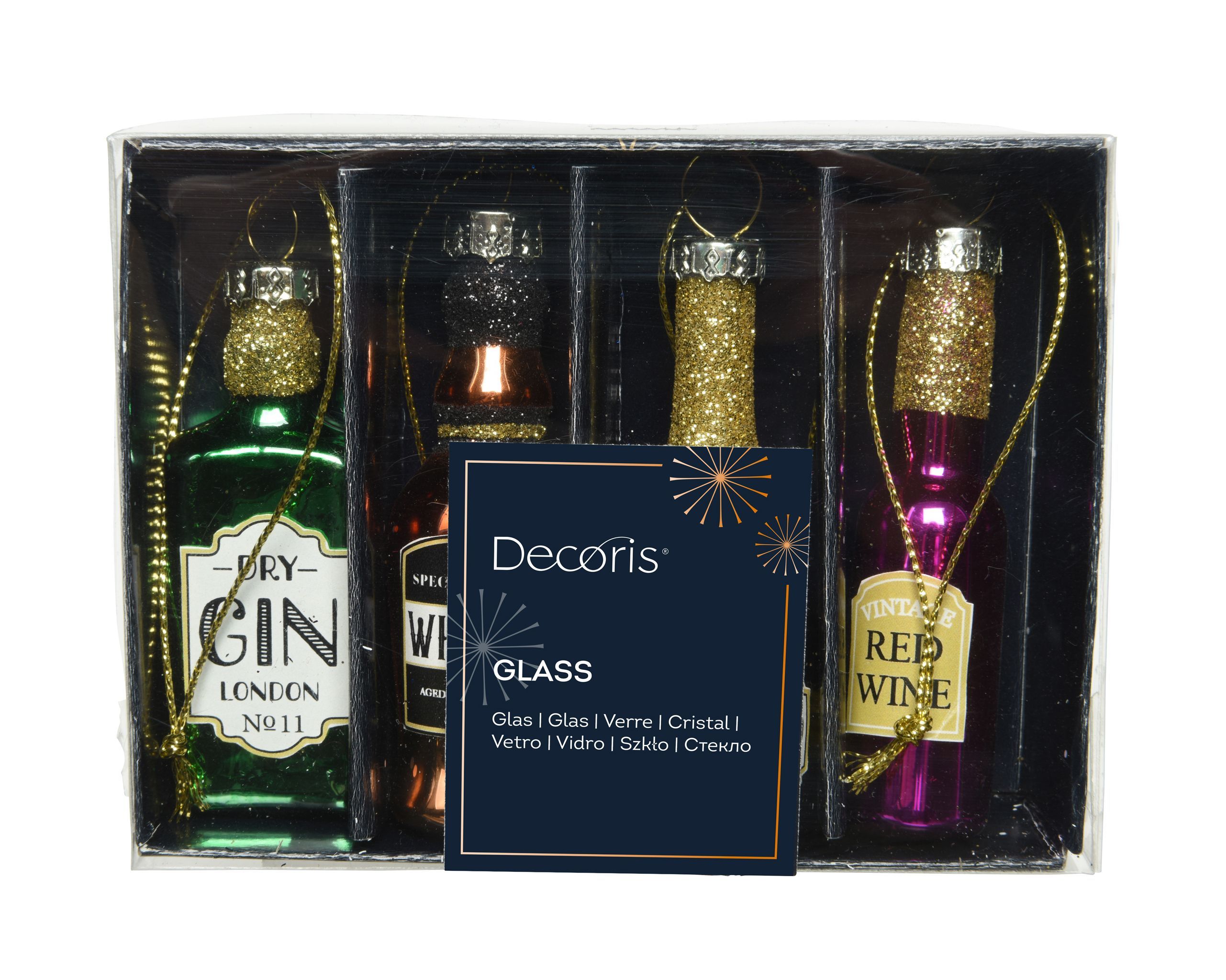 Christbaumschmuck Glas Mini Schnapsflaschen 6cm bunt, 4er Set