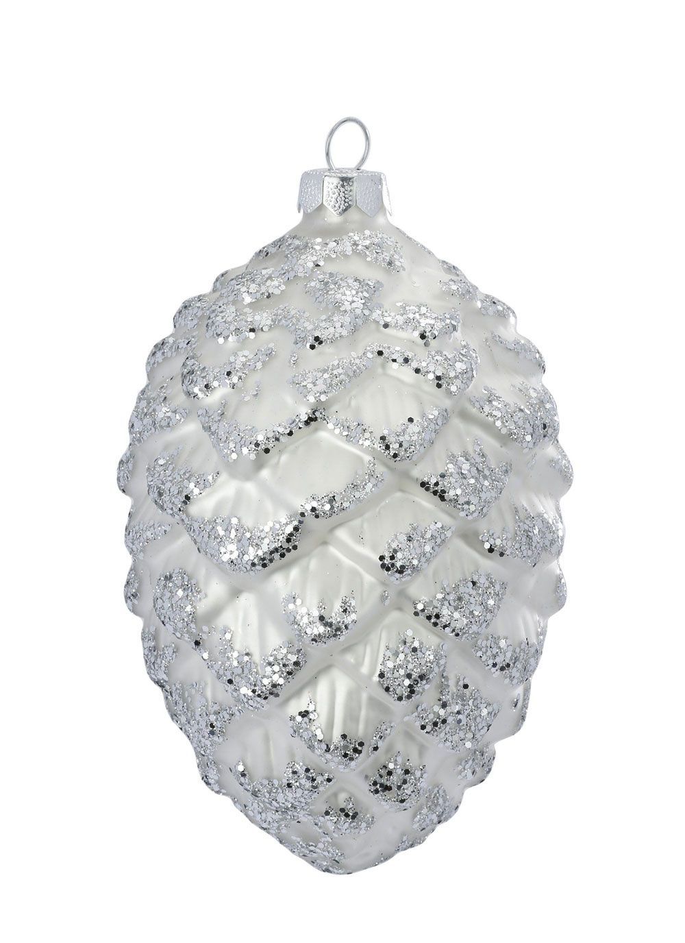 Christbaumschmuck Glas Zapfen 12.5cm weiß / silber