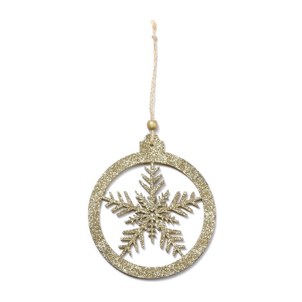 Christbaumschmuck Glitzer Schneeflocke aus Holz 12cm Gold