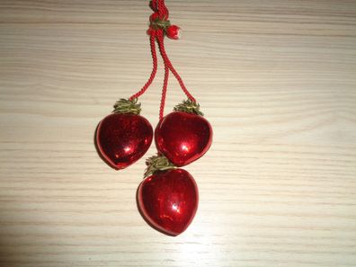 • alter Christbaumschmuck -3 rote Herzen mit Beeren