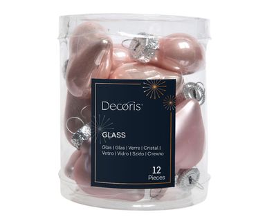 • Christbaumschmuck Herzen Glas 2x4,5x4 cm 12 Stück puderrosa