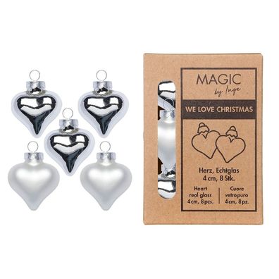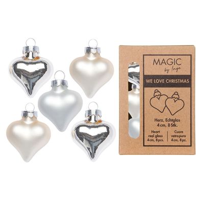 • Christbaumschmuck Herzen 4cm Glas 8 Stück - Cloud Dancer