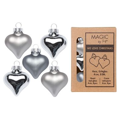 • Christbaumschmuck Herzen 4cm Glas 8 Stück - Hazy Grey