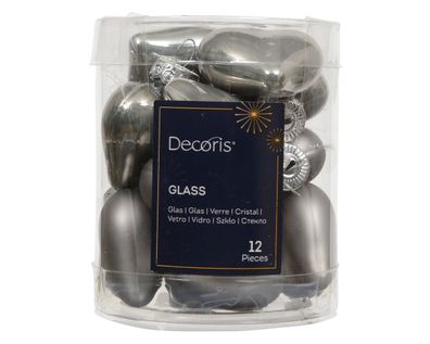 • Christbaumschmuck Herzen 4cm Glas 12 Stück - Zart Grau