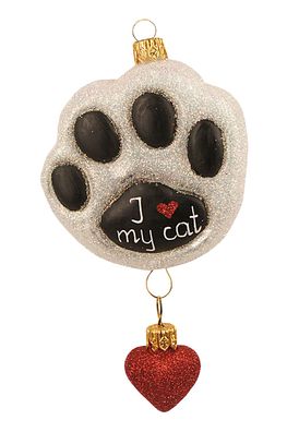• Christbaumschmuck Glas Katzenpfote mit Herz 7cm