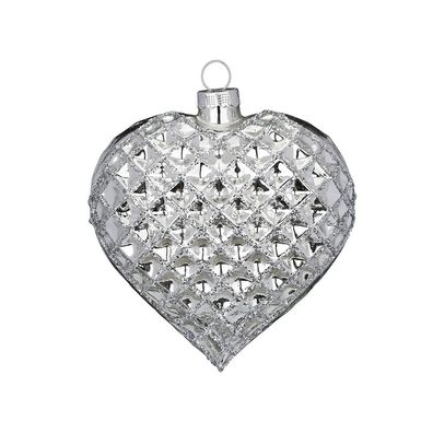 • Christbaumschmuck Glas Herz mit Waffelmuster 10.5cm silber