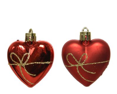 • Christbaumschmuck Kunststoff Herzen mit Schleifen 6cm rot 2er Set