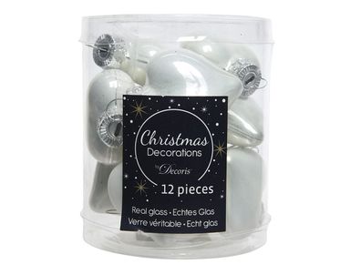 • Christbaumschmuck Herzen 4cm Glas 12 Stück - Winterweiß