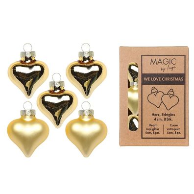 • Christbaumschmuck Herzen 4cm Glas 8 Stück - Inkagold