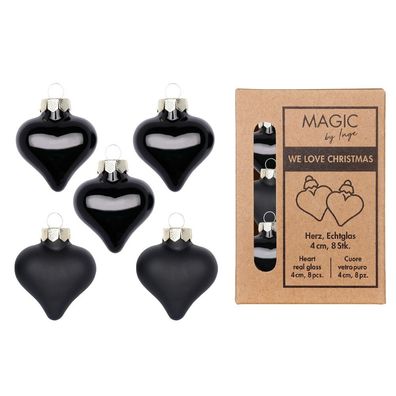 • Christbaumschmuck Herzen 4cm Glas 8 Stück - Ebony Black