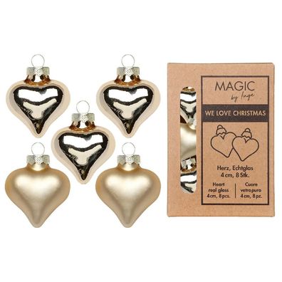 • Christbaumschmuck Herzen 4cm Glas 8 Stück - Golden Sesame