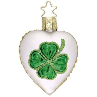 • Christbaumschmuck Herz mit Kleeblatt Glas 6cm weiß / grün, 1 Stück