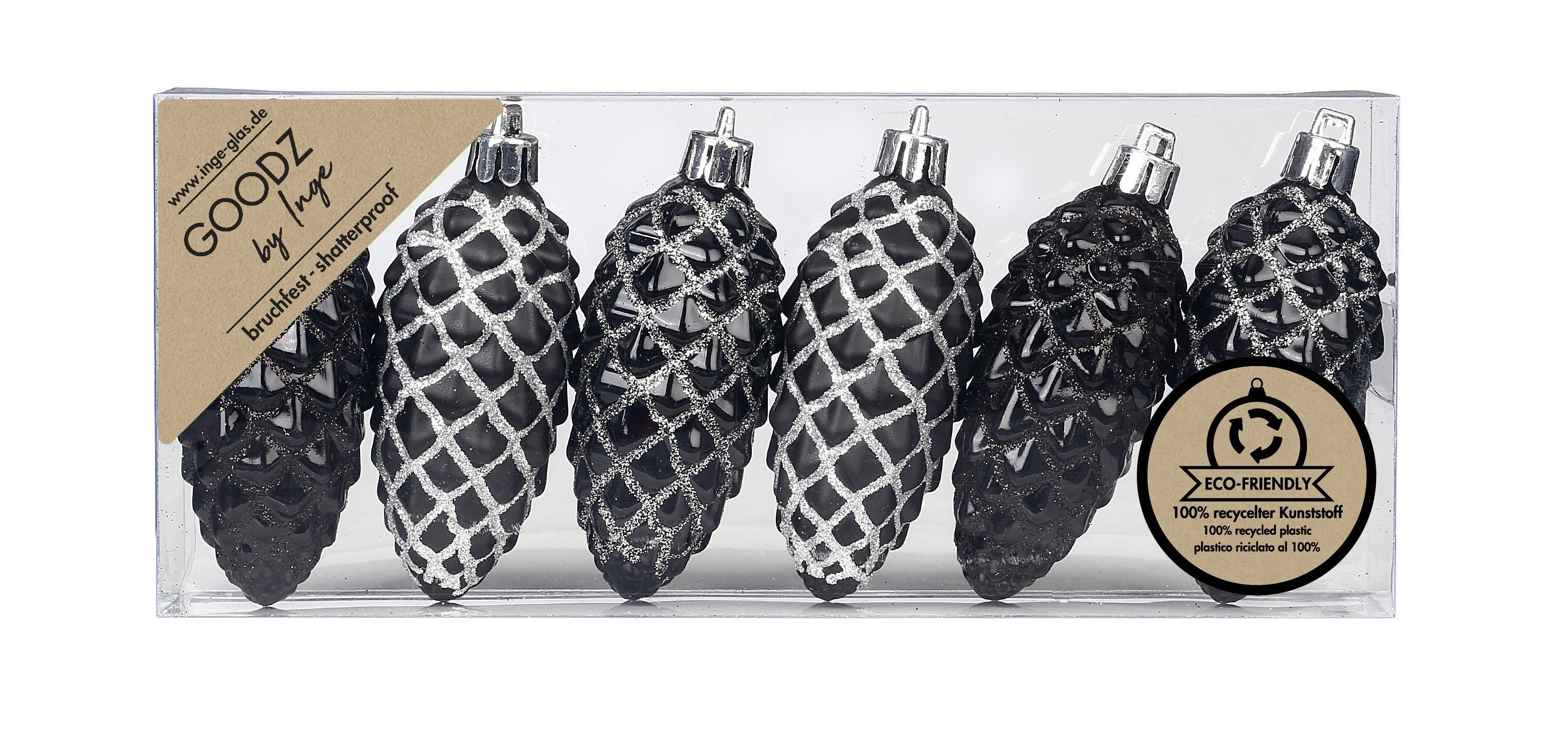 Christbaumschmuck Kunststoff Zapfen 9cm Schwarz Mix 6er Set