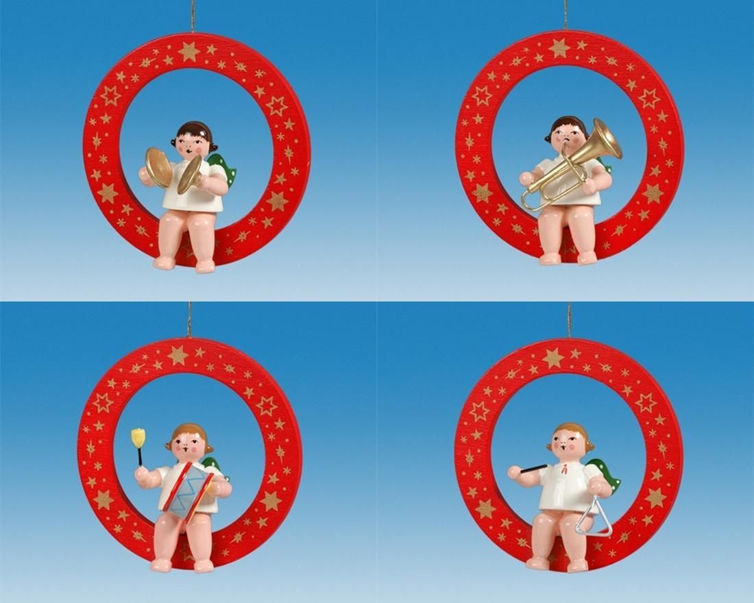Christbaumschmuck Roter Ring mit Engel 4 teilig ohne Krone Höhe 6cm NEU Baumbehan