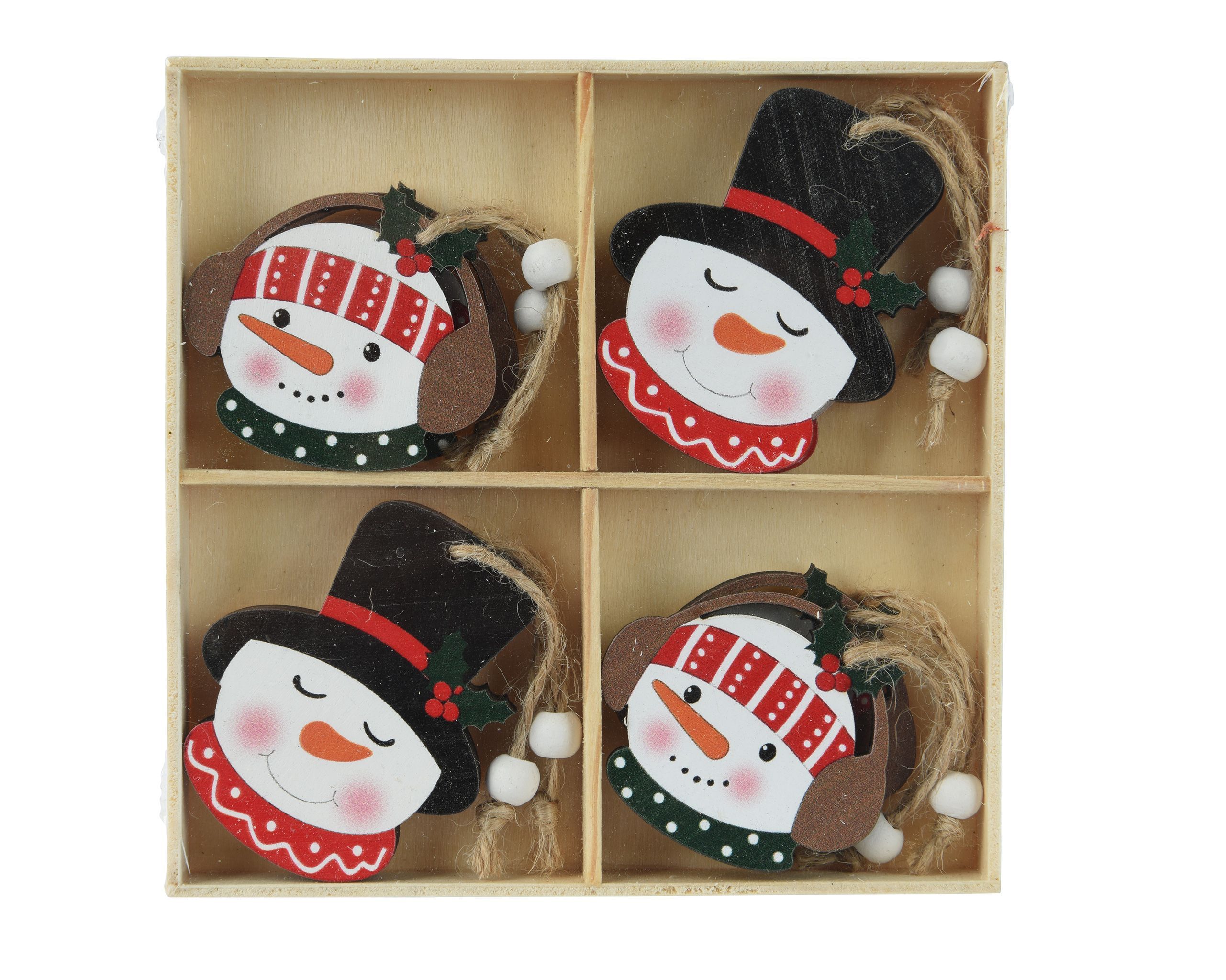 Christbaumschmuck Schneemann Holz 10cm Figuren 8er Set Weiß / Rot