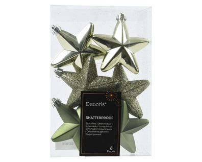 • Christbaumschmuck Sterne 7cm Kunststoff 6 Stück - Matchagrün
