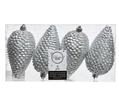 • Christbaumschmuck Zapfen 12cm Kunststoff 4 Stück - Silber
