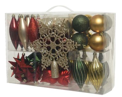 • Christbaumschmuck Kunststoff mit Baumstern 60er Set - grün / rot