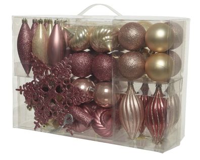 • Christbaumschmuck Kunststoff mit Baumstern 60er Set - Samtpink / Perle