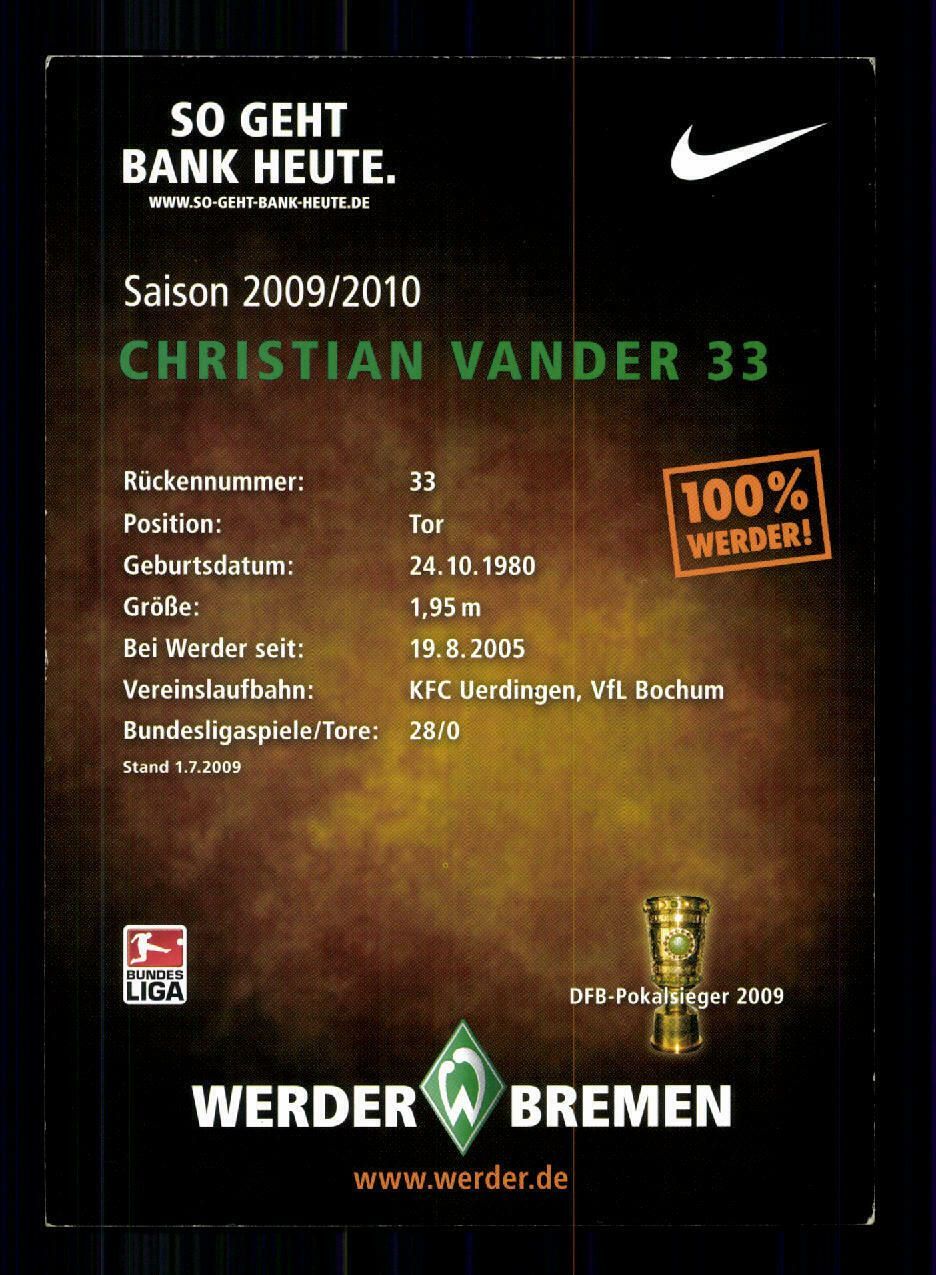Christian Vander Autogrammkarte Werder Bremen 2009-10 Original Signiert
