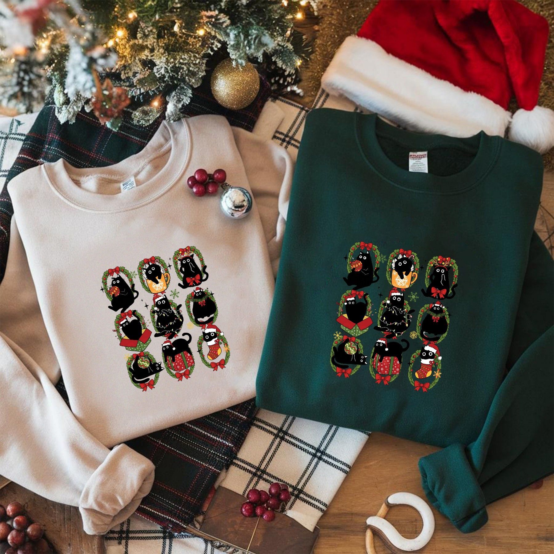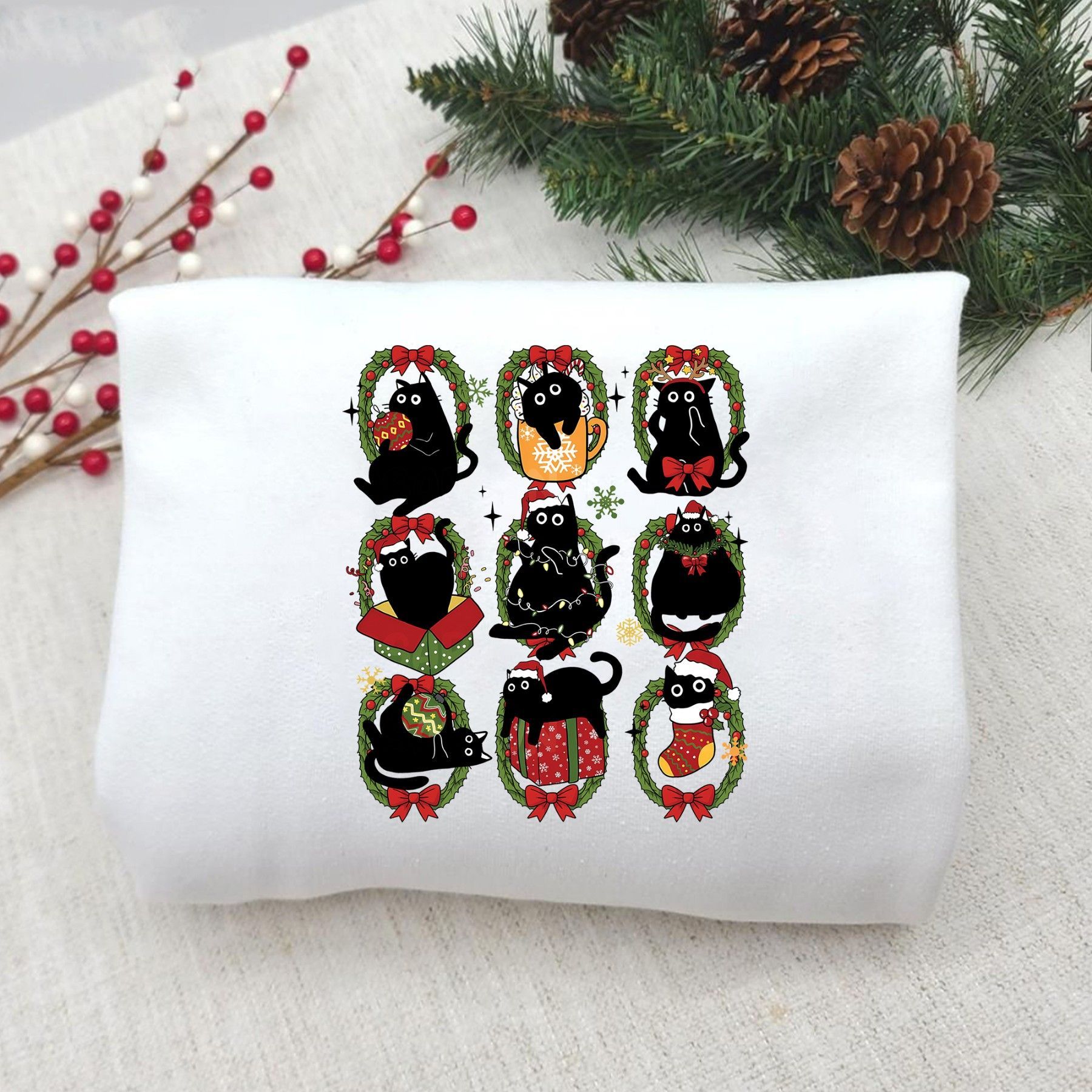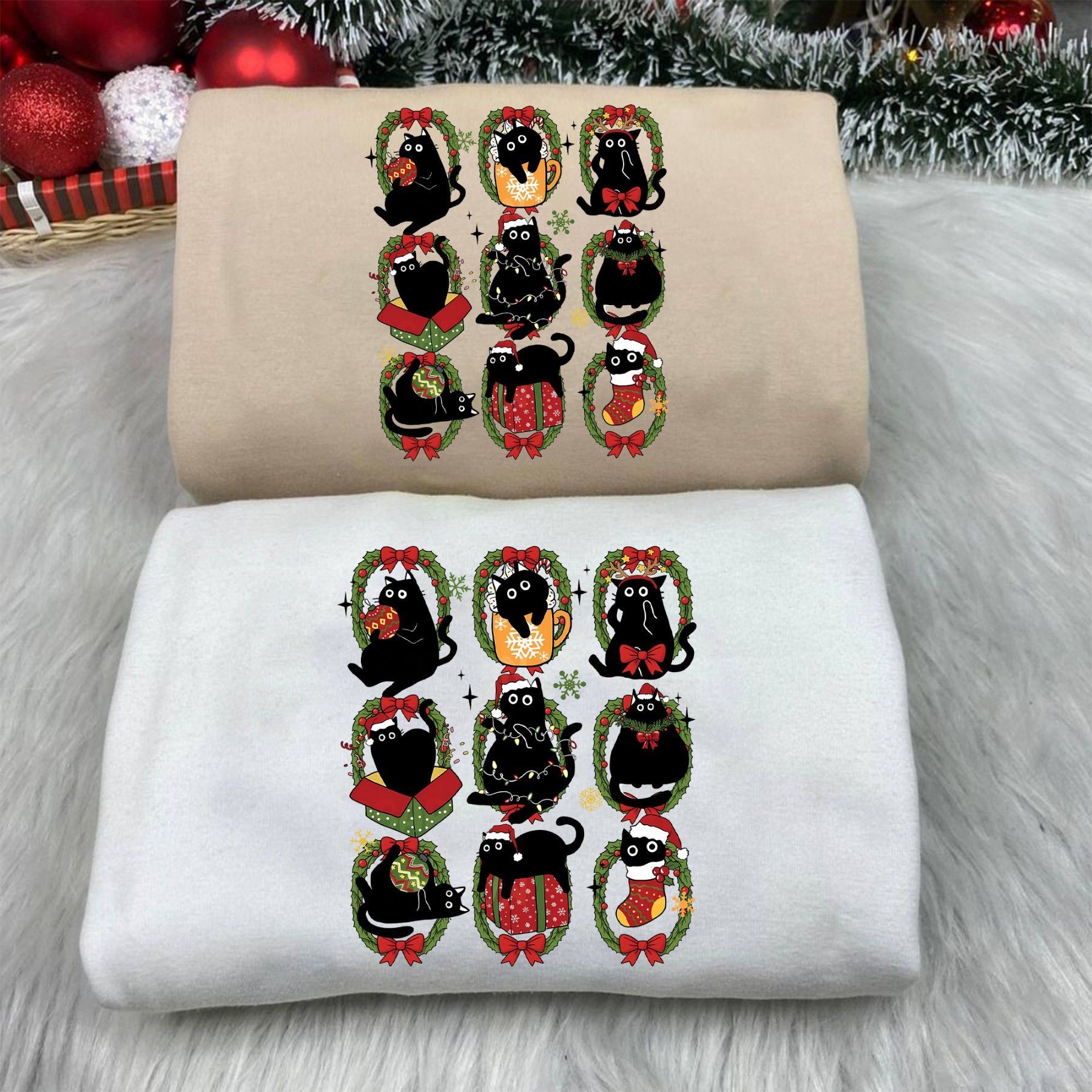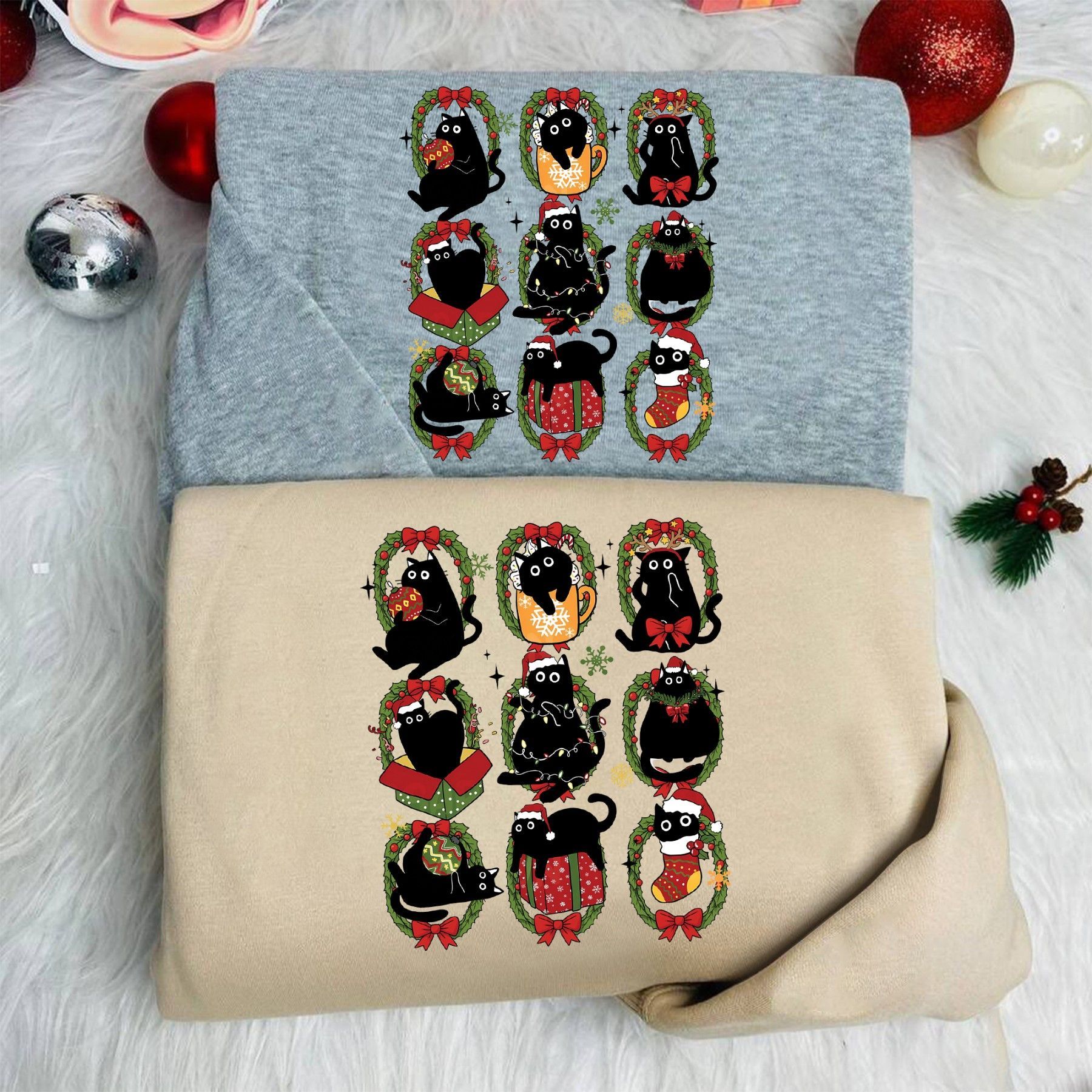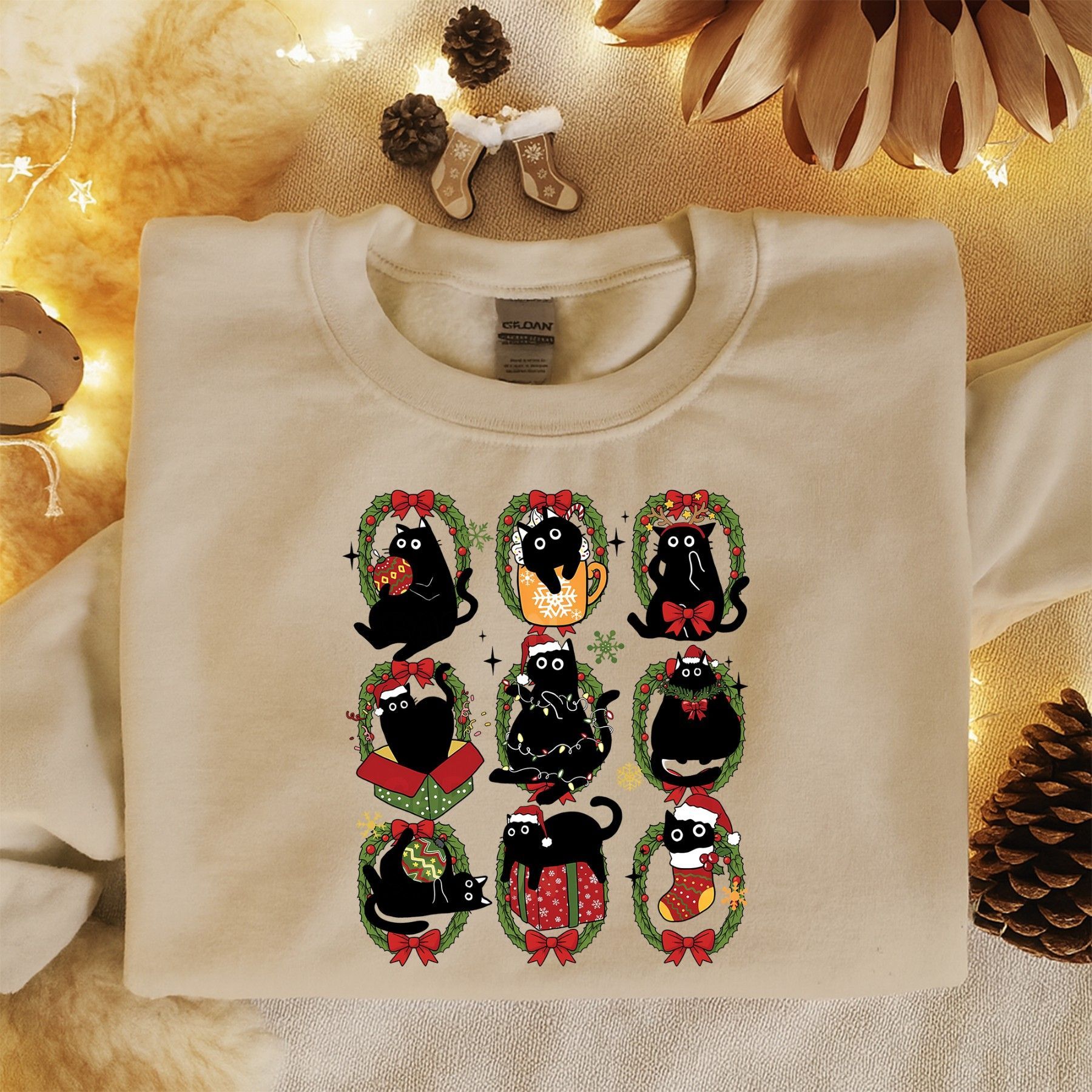 Christmas Cats Shirt, Lustiges Katzen Weihnachten T-shirt, Schwarze Katze Sweatshirt,
