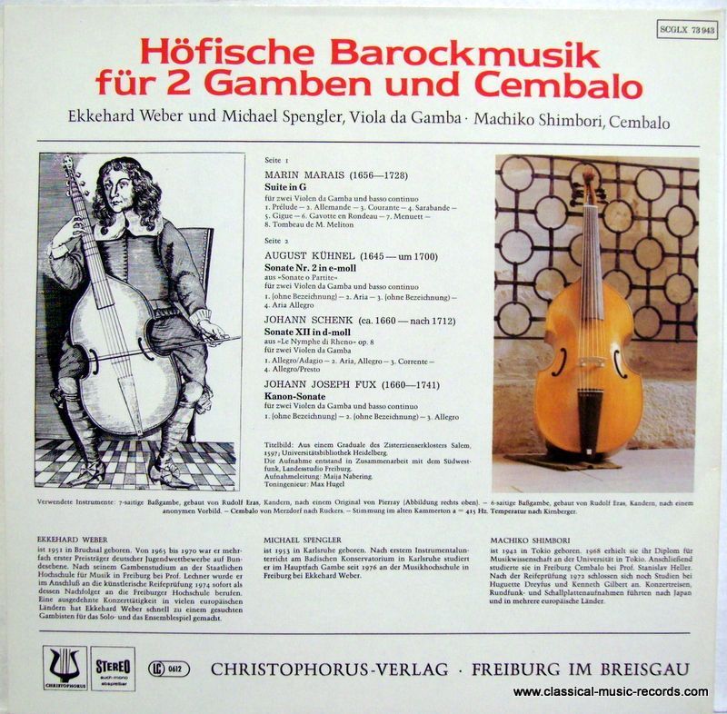 Condition Vinyl Near Mint (NM or M-) Condition Sleeve Very Good Plus (VG+) Tracks included: Suite In G - Für 2 Violen Da Gamba Und Basso Continuo Composed By : Marin Marais I 1. > Prelude 2. > Allemande 3. > Courante 4. > Sarabande 5. > Gigue 6. > Gavotte En Rondeau 7. > Menuett