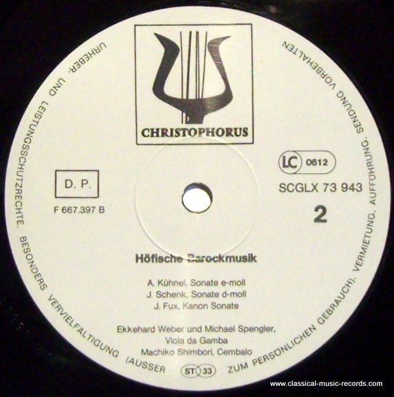 Christophorus SCGLX 74046 - Ekkehard Weber - Barocke Kammermusik Für Gamben - E