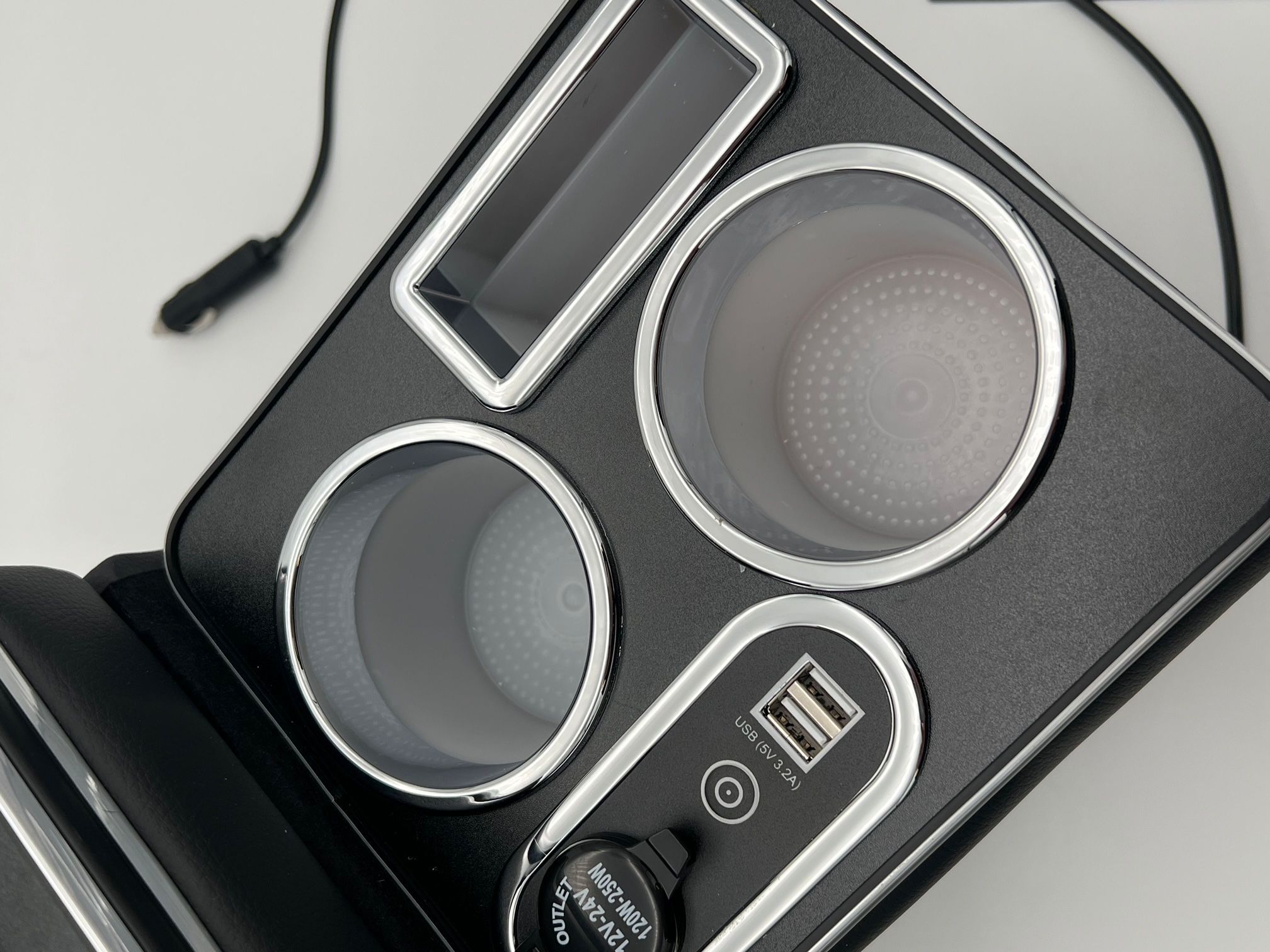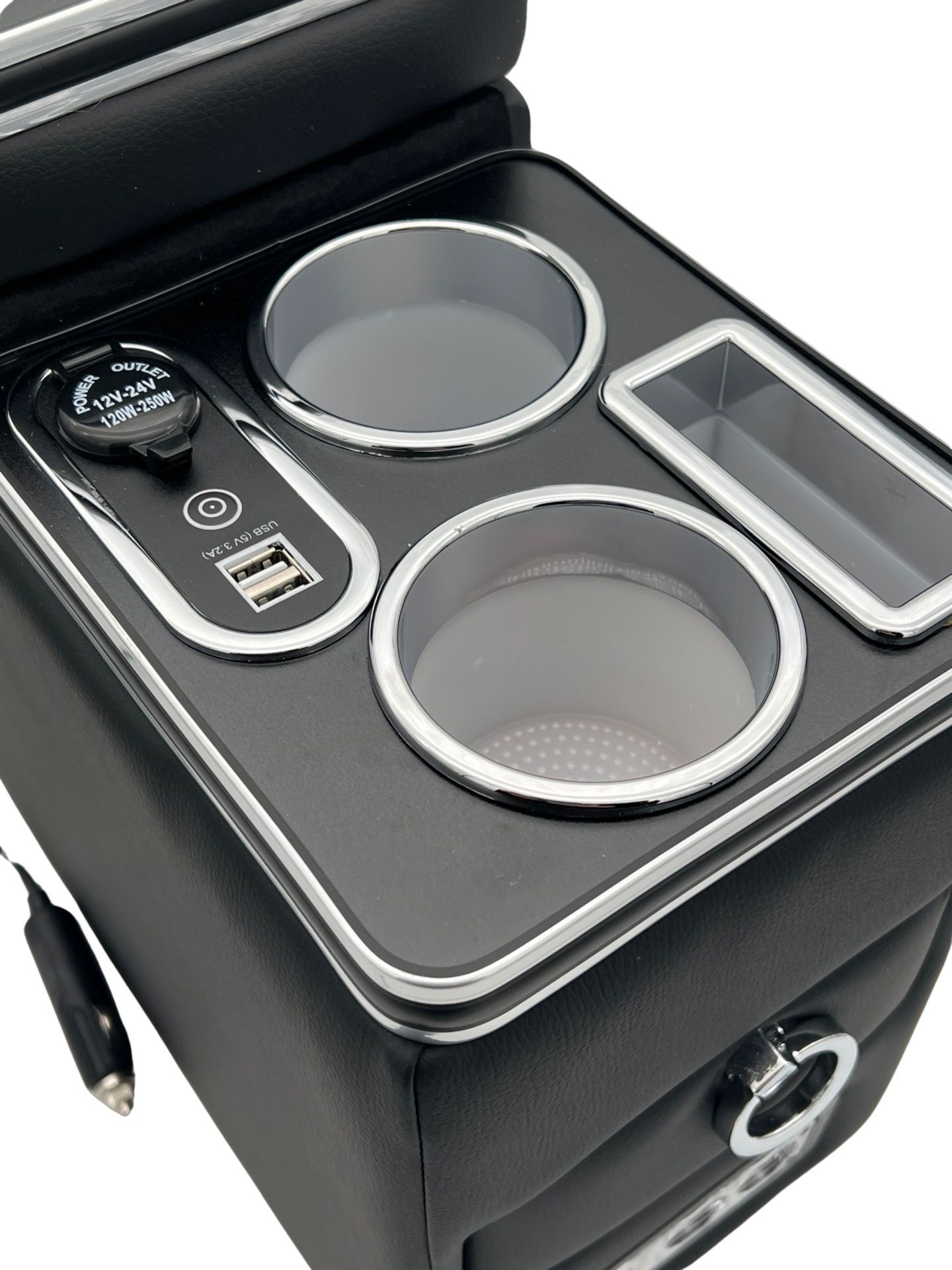 Chrom Edition Staufach Mittelkonsole Ablage für alle Opel Movano 93-23 mit RGB Farbwechsel-LED Beleuchtung, USB und Induktions-Ladestation
