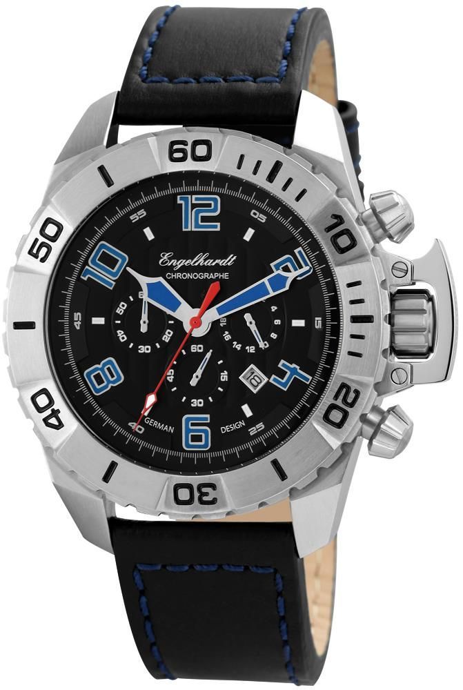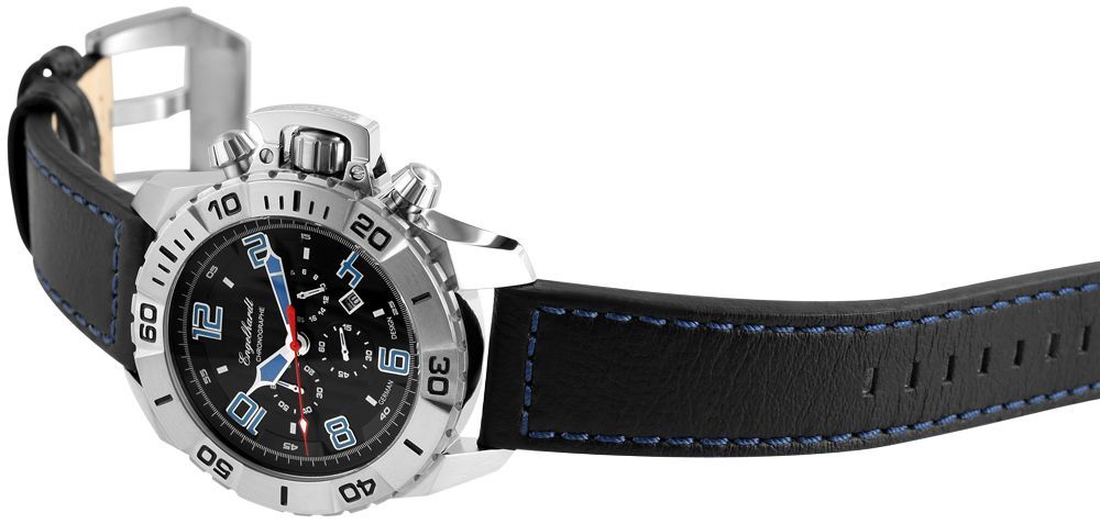 Chronograph Herrenuhr Lederarmband schwarz silbernes Gehäuse