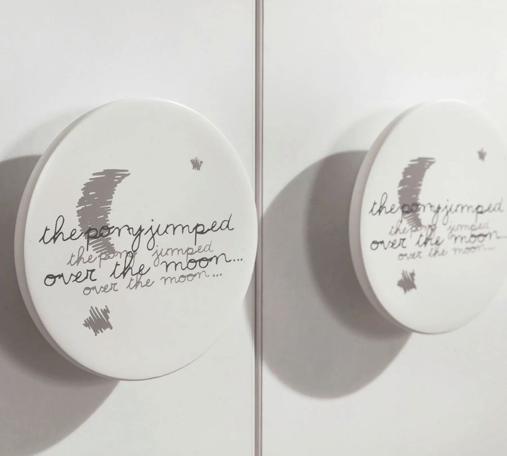 Cilek Baby COTTON Kleiderschrank, 3-trg. Die Möbel- und Accessoire-Serie Baby Cotton von Cilek erzählt eine zauberhafte Geschichte von einem Pony, das über den Mond flog. Die Schriftzüge auf den Möbeln und Accessoires erwecken die Geschichte zum Leben und bieten eine schöne Gute-Nacht-Geschichte für