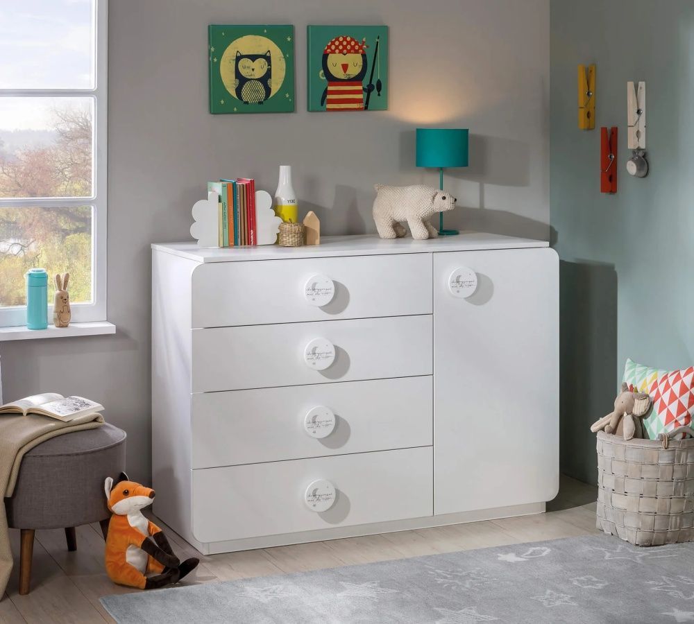 Cilek Baby COTTON Kommode (groß) Die BABY COTTON Kommode von Cilek vereint Schönheit und Funktionalität in einem Möbelstück. Das stilvolle Design fügt sich mühelos in jeden Einrichtungsstil ein. Vier geräumige Schubladen sowie ein Fach hinter der Tür bieten ausreichend Platz für die Aufbewahrung von