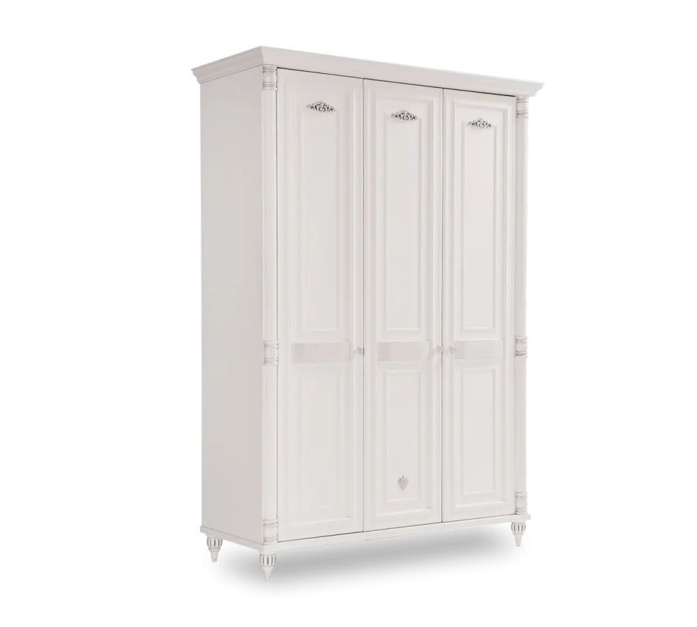Cilek ROMANTIC Kleiderschrank, 3-türig Von außen stilvoll, von innen großzügig: So kann dieser edle Kleiderschrank aus der Serie ROMANTIC beschrieben werden. Er bietet reichlich Stauraum für Kleidung, Wäsche und Accessoires. Hinter den drei Türen des Schranks verbirgt sich eine LED-beleuchtete Kleid