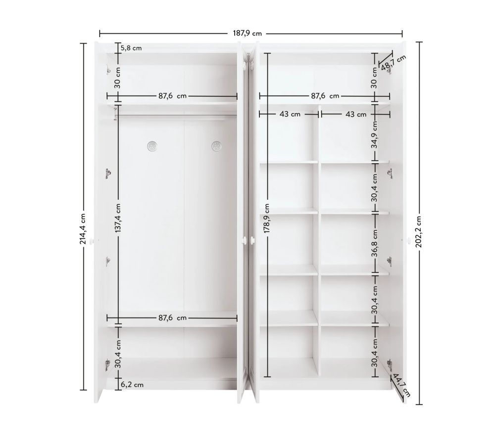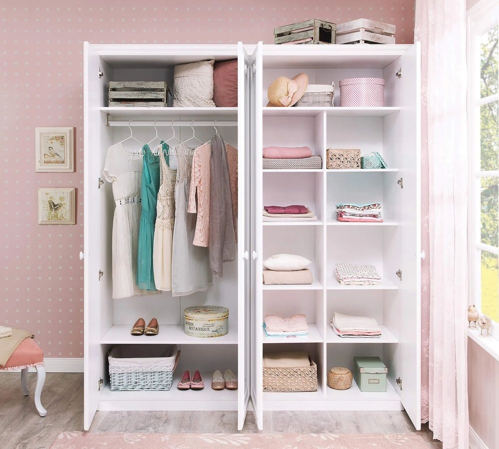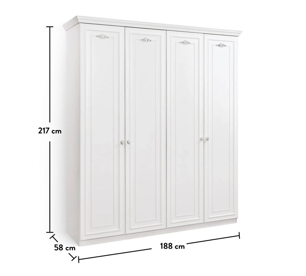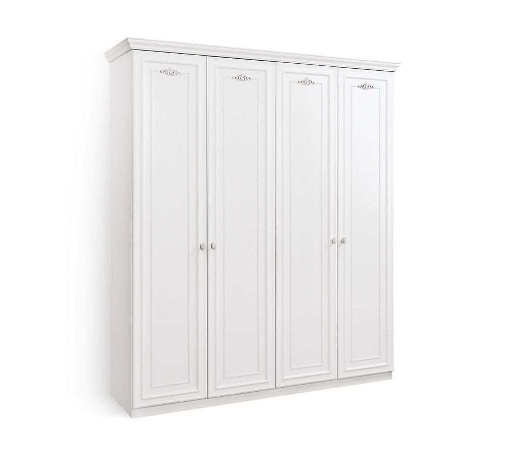 Cilek ROMANTICA Kleiderschrank, 4-türig Der Kleiderschrank ROMANTICA mit vier Türen ist ein echtes Schmuckstück für jedes Mädchenzimmer. Mit seinen vier Türen, die mit dekorativen Leisten und floralen Elementen verziert sind, versprüht er einen romantischen und verspielten Charme. Viel Platz für gro