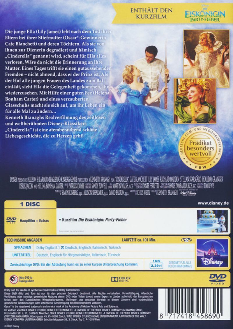 Cinderella (DVD) Live-Action Realfilm Min: 106 + Bonus/DD5.1/W