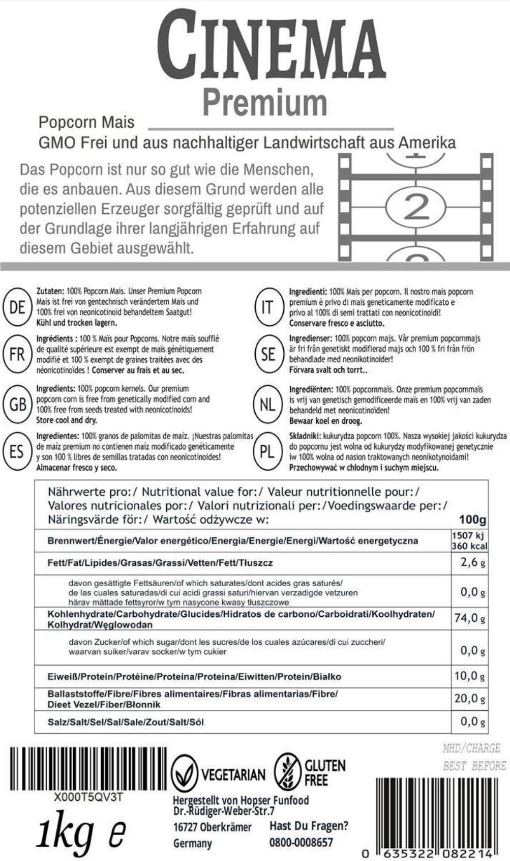 Cinema Premium Popcornmais 1 kg GMO-frei
