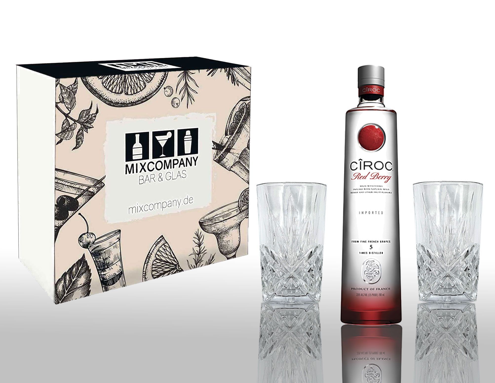 Ciroc Ciroc Geschenkset Vodka Red Berry 0,7L (37,5% Vol) mit 2er Set Longdrinkglas Kr